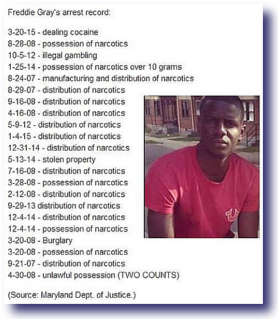 Defining Progress - Freddie Gray Arrest RecordI won’t say that Baltimore went up in flames, because in reality very few buildings were burned. The damage and unrest were actually limited to a relatively small portion of the city. The question nobody has asked as of yet, is “Why Did Freddie Run???” No, think about this for a moment. Think critically. I’m sure by now you’ve seen Freddie’s arrest record. What? Close to 20 felony arrests? Freddie was only 25 years old. Since juvenile records are sealed, we must assume that these felony arrests came after he reached the age of 18.