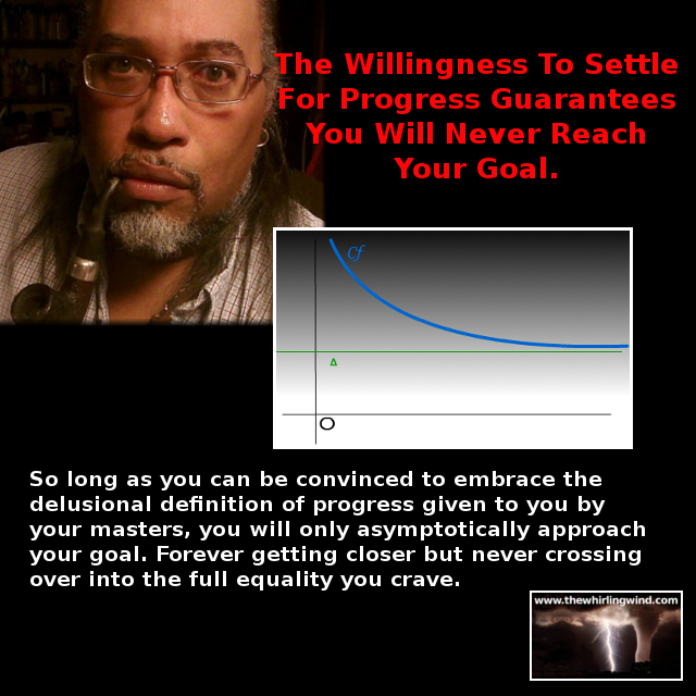 An asymptote is a line that continually approaches a given curve but does not meet it at any finite distance. It will forever approach the curve – destination – but never touch or reach it. When we talk about progress in the struggle for the civil rights of Black people in these United States, we’re looking at an asymptotic relationship.
