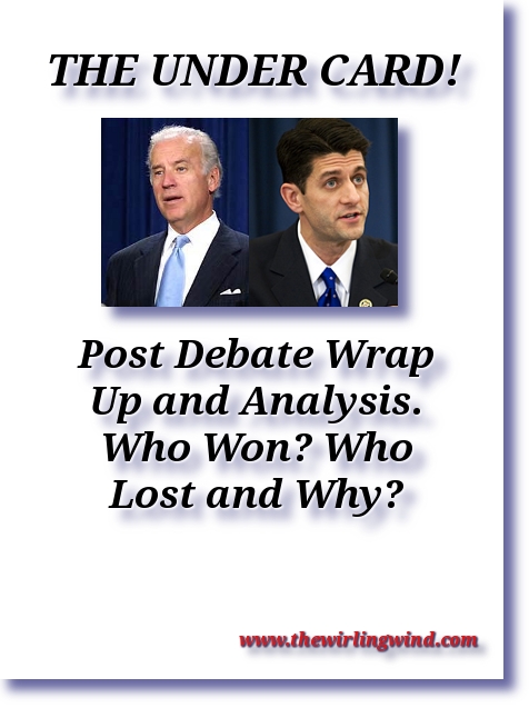 In my opinion, Joe Biden won this debate walking away. It wasn’t even close. It is difficult to debate someone who was present and participated in history when all you’ve got is untried and unproven theory. I admire congressman Ryan’s scrappy-ness, but he was simply out of his league.