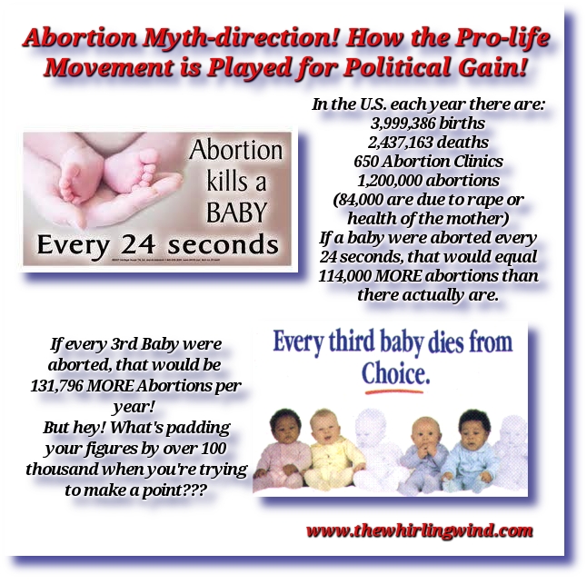 It is high time someone called the “Pro-Life” movement on their blatant hypocrisy. Some of the same people who are out picketing Abortion Clinics will leave that protest, head cross town and join up with a TEA Party rally. Some of the same people protesting abortions, on the basis of being “Pro-Life,” believe in and support the “Death Penalty.” Where were they when we invaded Iraq? This sovereign nation had nothing to do with the attacks on September 11, 2001. They did not have any “Weapons of Mass Destruction.” Hundreds of thousands of innocent Iraqi civilians, men, women and children lost their lives, where were these “Pro-Life” protesters?