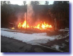 Then there’s the curious nature of the fire. We watched that fire burn that cabin all the way to the ground. The fire burned so hot the police couldn’t go in and search the rubble until the next day after the fire department hosed it down. The body was so charred that it could not be positively identified… however, they did find his wallet with his driver’s license which miracle of miracles did not burn up in the fire. Does this seem suspicious to you?