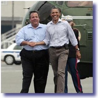 President Obama with an extremely grateful Chris Christie, Governor of New Jersey